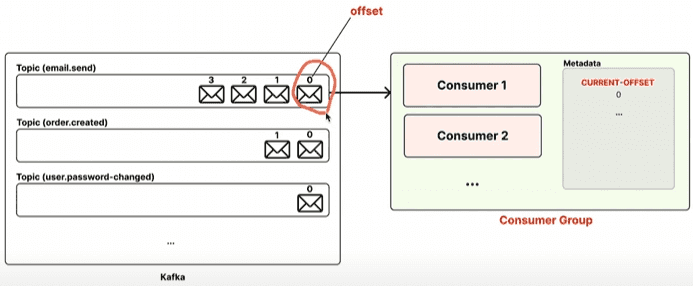 중요한건 Topic 은 Kafka 가 마음대로 분류하는 것이 아니라, Producer 가 Kafka 에게 email.send